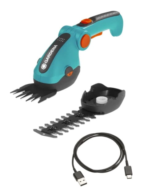 Nożyce akumulatorowe Gardena ComfortCut do cięcia brzegów trawnika, bukszpanów i niskich żywopłotów dwa noże w zestawie